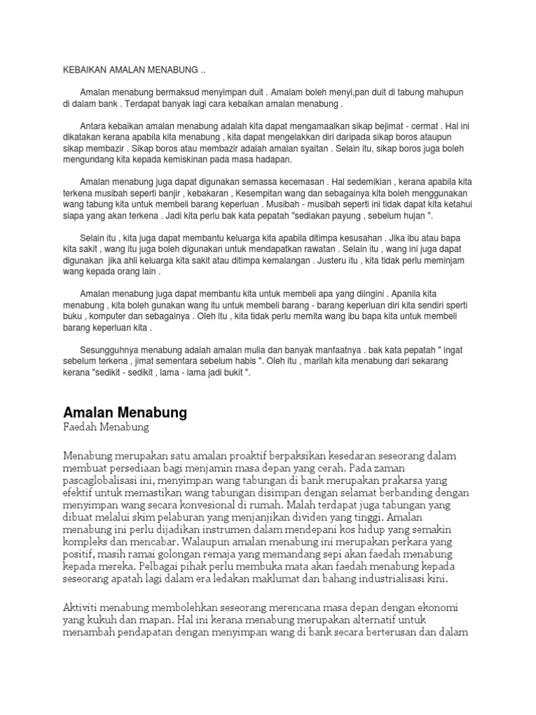 Yang saya hormati Tuan Pengerusi Majlis Yang Berusaha Puan Guru Besar para hakim yang adil dan bijaksana guru-guru dan rakan-rakan sekalian. Contoh karangan Amalan Menabung Karangan 1. Amalan berjimat cermat ini sememangnya memberikan.